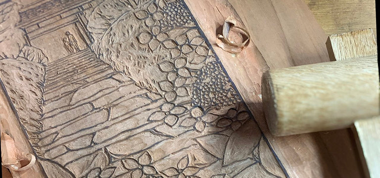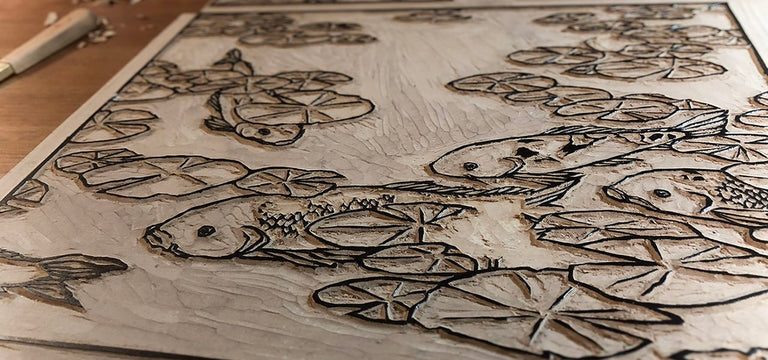 I started out as a block print artist, designer, and letterpress printer on the sunny West Coast of America. I’m now living and creating art in Kamakura, Japan, where I carve and hand-print each piece with a group of highly-skilled craftspeople. I hope you enjoy browsing and feel the care that goes into every detail of our work!