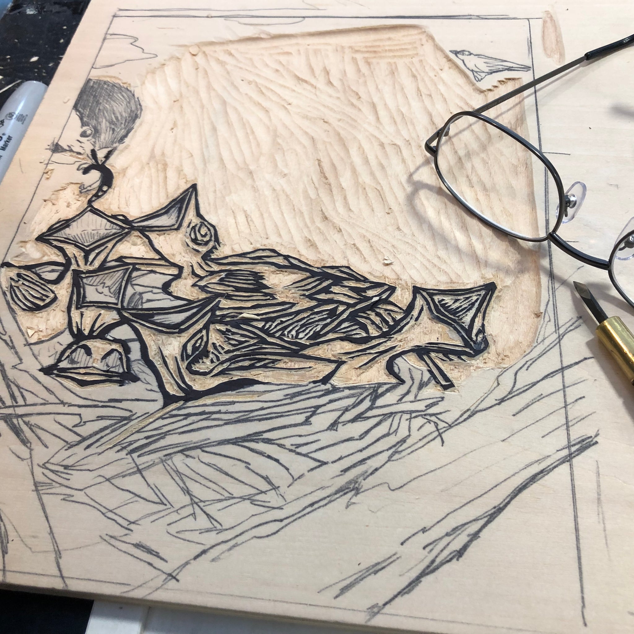 Letterpress-printed, using hand-carved blocks