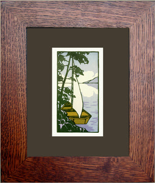 Our notecard frames are made by Dard Hunter Studios in Ohio, using quarter-sawn white oak. They feature mitered corners and a Craftsman Oak finish, with a Dark Ash mat to complement the design.