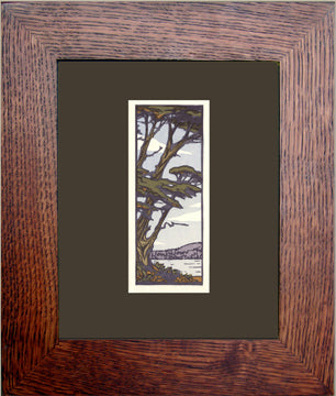 Our notecard frames are made by Dard Hunter Studios in Ohio, using quarter-sawn white oak. They feature mitered corners and a Craftsman Oak finish, with a Loam mat to complement the design.