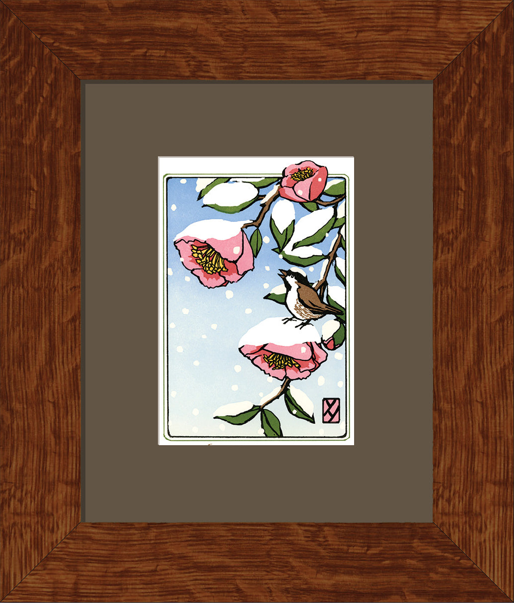 Our notecard frames are made by Dard Hunter Studios in Ohio, using quarter-sawn white oak. They feature mitered corners and a Craftsman Oak finish, with a Loam mat to complement the design.